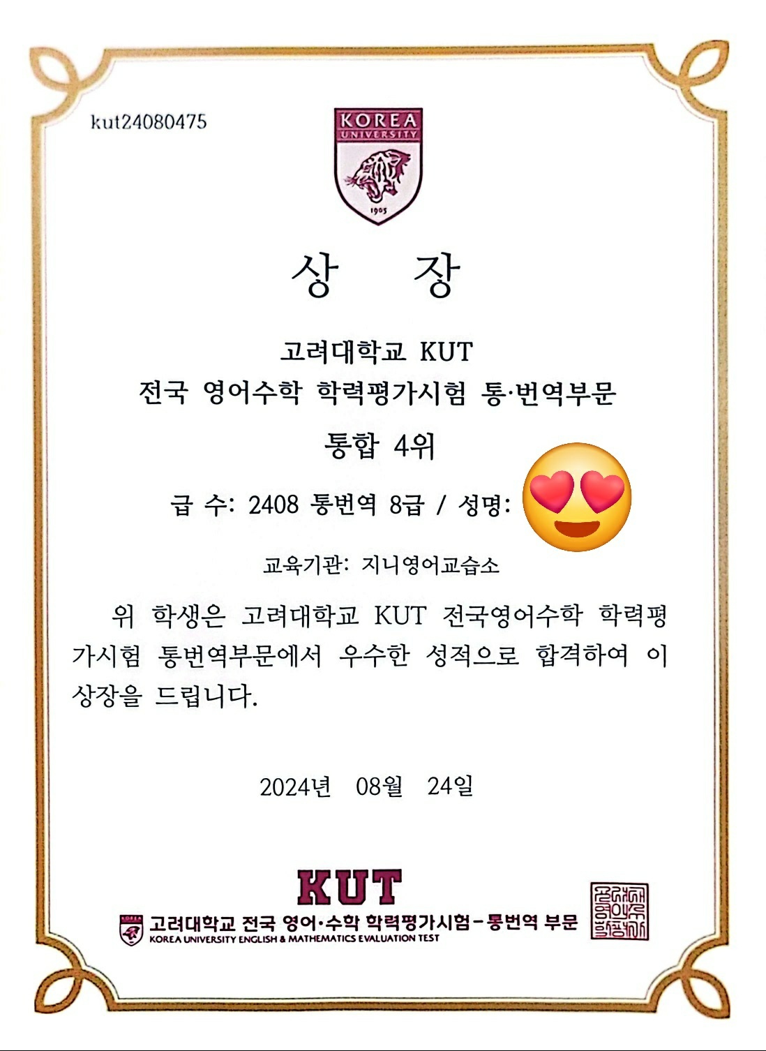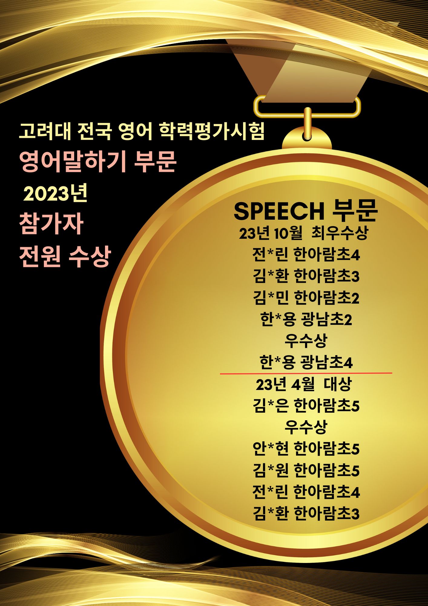 보컬 파닉스 과정 6개월 이후 말하기 대회 참가 우수한 성적을 기록